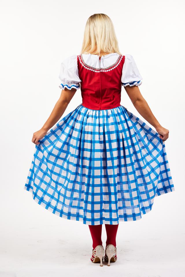 Women's Bavarian style blue gingham dress with apron