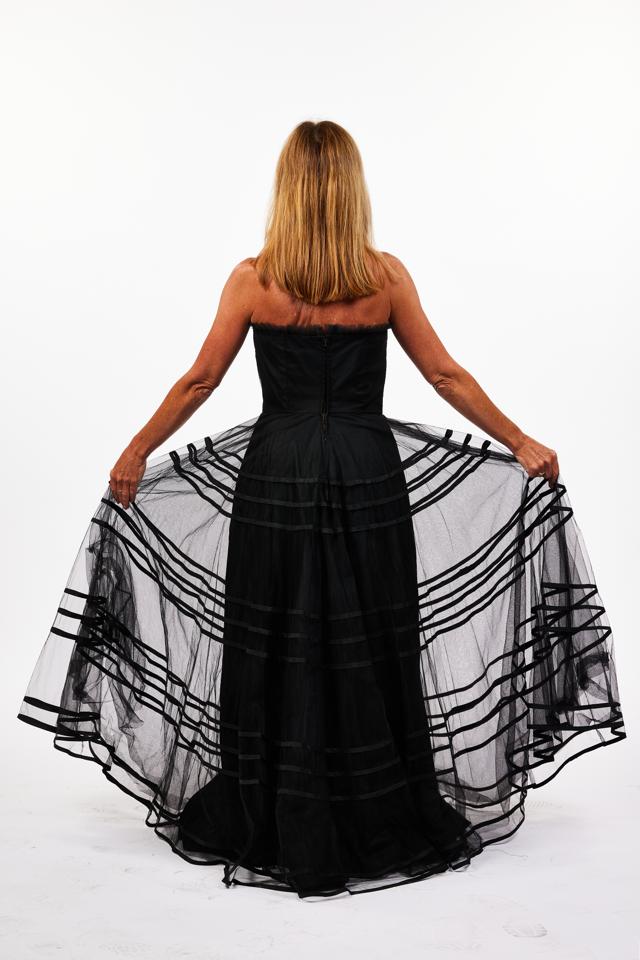 Women's Black ball gown with sequins and net over skirt