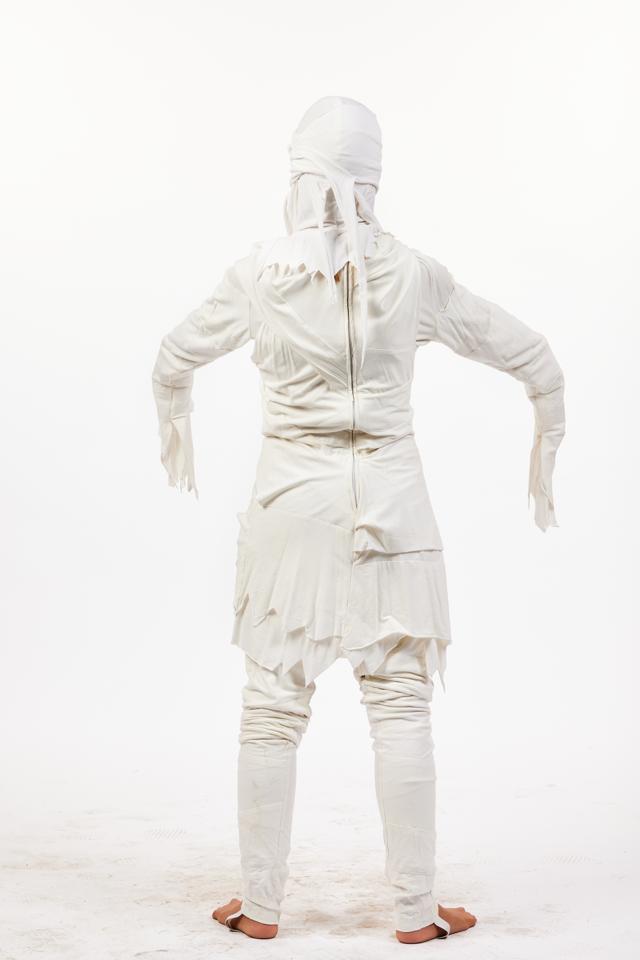 Unisex, classic Egyptian Mummy costume comprises of a long sleeve top, trousers and head mask. The suit is made from light weight, stretchy fabric dressed with bandages. Great or a desert based ghost gag. A full head mask with gauze front is breathable and can be seen through. Perfect for a pantomime Ghost Gag or scary Halloween costume. Size 6-10. Small, S.