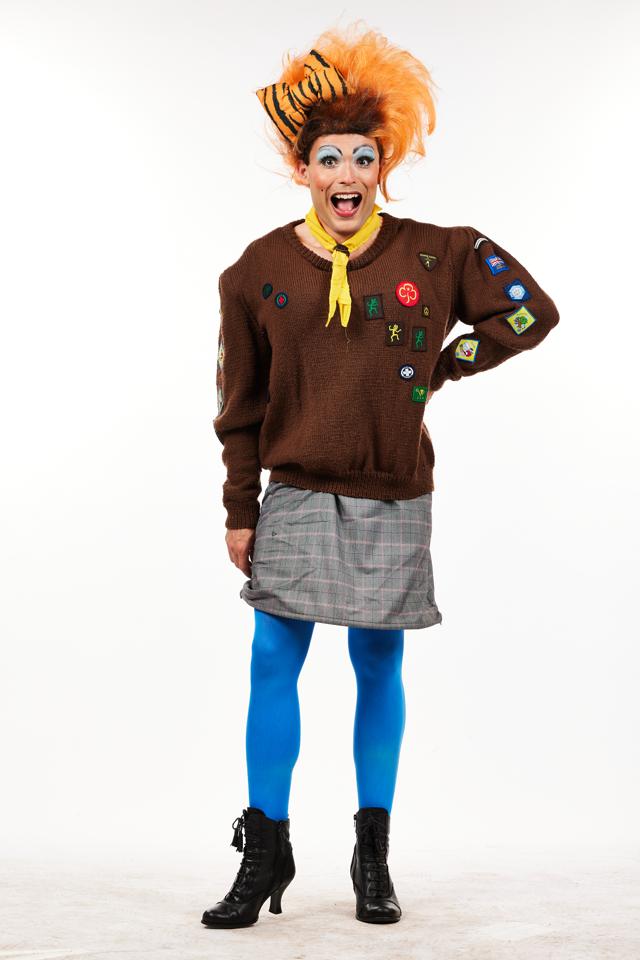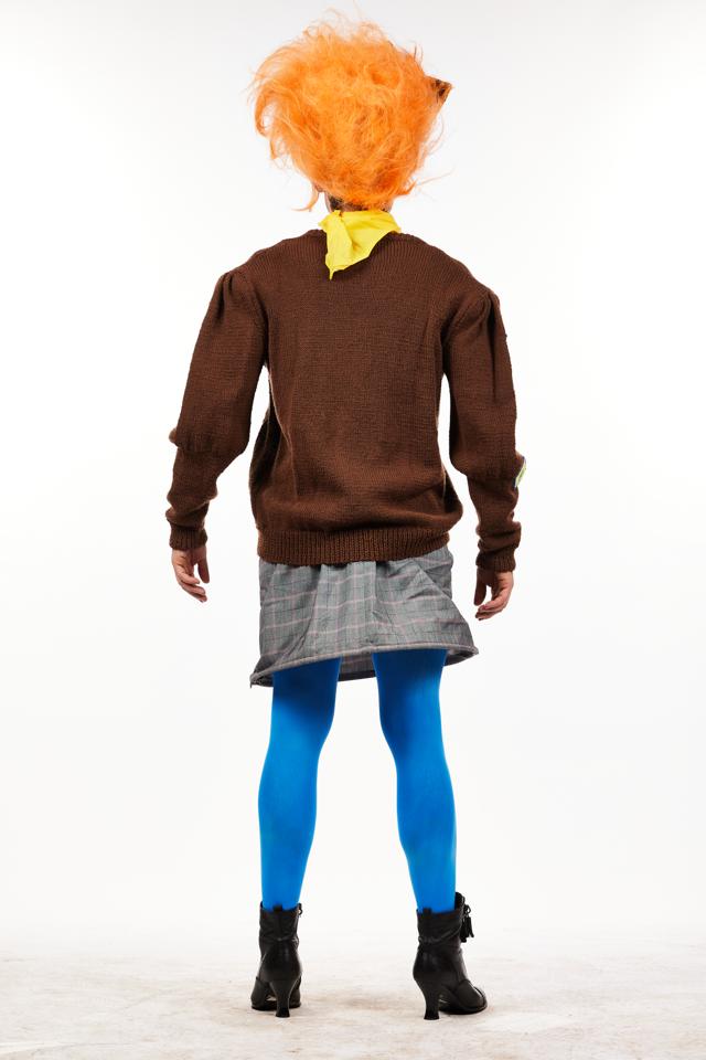 Dib Dib Dib! This is the perfect costume for a dame going for a tramp in the woods or ready to get her ging-gang-goolies out! Comprising a grey skirt an brown jumper that is supersized so that your dame can show of her massive achievements (the badges!) complete with yellow neckerchief and woggle this is a brilliant gag costume. Size Small-Medium, S-M. tights, boots and wig not included with this hire.